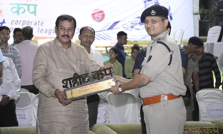 पुलिस महानिरीक्षक दुर्ग रेंज दुर्ग डॉ आनंद छाबड़ा के मार्गदर्शन में शहीद कप 2023 के समापन समारोह में विशिष्ट अतिथि के तौर पर माननीय सांसद श्री विजय बघेल, कलेक्टर दुर्ग श्री पुष्पेंद्र मीणा, पुलिस अधीक्षक दुर्ग डॉ अभिषेक पल्लव, सहित पुलिस के अधिकारीगण,मीडिया बंधु, स्पॉन्सर हुए शामिल।* ▪️ *छत्तीसगढ़ के सबसे बेहतरीन कॉर्पोरेट टूर्नामेंट में 16 टीमों के मध्य हुए मुकाबले में “सीजी फॉरेस्ट” ने प्रथम एवं “दुर्ग रेंज पुलिस” ने द्वितीय स्थान प्राप्त किया।*