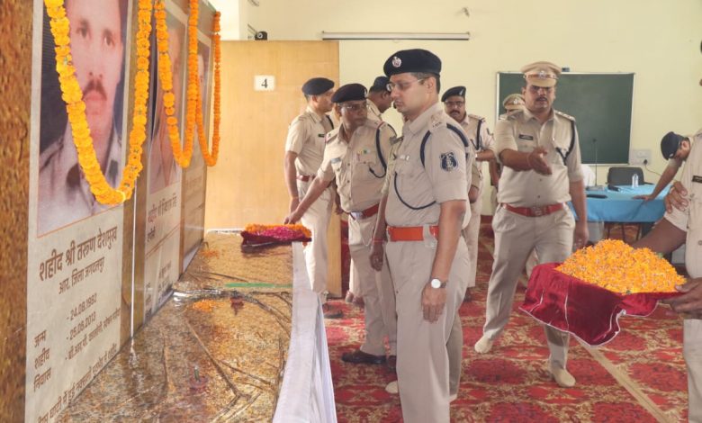 पुलिस लाईन, दुर्ग में झीरम घाटी में नक्सल हिंसा के शिकार हुए जनप्रतिनिधि, वरिष्ठ पदाधिकारीगण, सुरक्षा बलों के जवानों को श्रद्धांजली देकर राज्य को पुनः शांति का टापू बनाने हेतु शपथ दिलाई गई।*