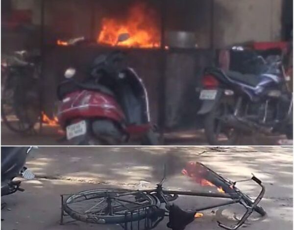 बिलासपुर। CG BREAKING : जिले के पुराना बस स्टैंड के शराब दुकान के पास बड़ा हादसा टल गया है। गुरुवार को बस स्टैंड के पास चखना सेंटर में अचानक गैस सिलेंडर फटने से हड़कंप मच गया। राहत की बात यह है कि आगजनी की घटना में कोई हताहत नहीं हुई, पर कई वाहनों में आग लग गई। लोगों की सजगता से आग पर काबू पा लिया गया है। जिले में शराब दुकान के सामने बेखौफ चखना सेंटर संचालित किया जा रहा है, जहां घरेलू गैस सिलेंडर का बड़ी संख्या में उपयोग किया जा रहा है। गौरतलब है बस स्टैंड के पास नाला निर्माण होने से डायवर्ट रूट के कारण शराब दुकान के सामने से ही वाहनों एवं लोगों का आना जाना हो रहा है। गनीमत है कि हादसे पर काबू पा लिया गया नहीं तो बड़ी जनहानि की संभावना थी।