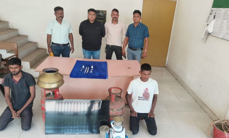 टीम द्वारा संदेहियों पर निगाह रखी जा रही थी, आदतन अपराधियों व जेल से रिहा हुये अपराधियों से पूछताछ कर पतासाजी के प्रयास किये जा रहे थे विषेष सूत्र भी लगाये गये थे। इसी दौरान विषेष सूत्रों से पता चला कि देवबलोदा निवासी भूपेन्द्र कुमार टण्डन अपने साथी संदीप चौहान के साथ घूम-घूम कर होटल वालो से एलपीजी सिलेण्डर बेचने की बातचीत कर रहा है कि सूचना पर टीम द्वारा घेराबंदी कर उक्त दोनो युवको को पकड़कर पूछताछ किया गया जो कि प्रारंभिक पूछताछ पर गुमराह करते रहे किंतु सतत् तथ्यात्मक पूछताछ करने पर अपने एक नाबालिग साथी के साथ मिलकर शराब के नषे की हालत में उक्त सूने मकान का ताला तोड़कर घर के अंदर प्रवेष कर नकबजनी की घटना को अंजाम देना स्वीकार किये। जिससे विधि के विरूद्ध संघर्षरत् बालक को विधिवत् परिजनों की उपस्थिति में तलब कर पूछताछ किया गया, उक्त दोनो आरोपियों एवं विधि के विरूद्ध संघर्षरत् बालक निषानदेही पर चोरी गई मषरूका सोने-चांदी के जेवरात, 02 नग एलपीजी गैस सिलेण्डर, मिक्सी, एलईडी टी.वी. एवं घरेलू उपयोग के बर्तन जुमला कीमती तकरीबन 01 लाख रूपये का बरामद कर जप्त किया गया। अग्रिम कार्यवाही थाना पुरानी भिलाई से की जा रही है।