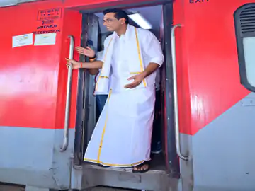 पावर हाउस स्टेशन में साउथ इंडियन ड्रेस में विधायक देवेंद्र यादव हुए अक्कूपल्ली के लिए रवाना:समरालु कार्यक्रम में शामिल होकर देवी से फिर सरकार बनाने की करेंगे प्रार्थना