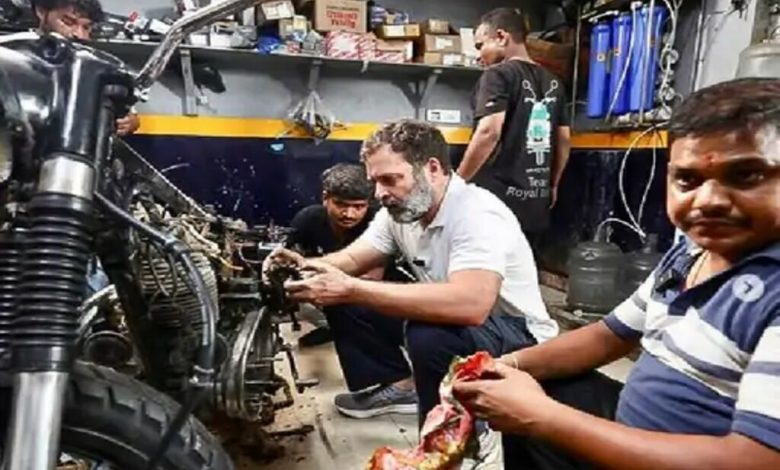आखिर ऐसी क्या नौबत आ गई कि राहुल गांधी को करना पड़ा गैरेज में काम, बाइक में पेच कसते हुए नजर आए कांग्रेस नेता, तस्वीरें हो रही वायरल