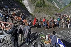 “पहलगाम में 3,200 और बालटाल आधार शिविर में 4,000 तीर्थयात्री हैं। “मौसम में सुधार के बाद यात्रा फिर से शुरू होगी।