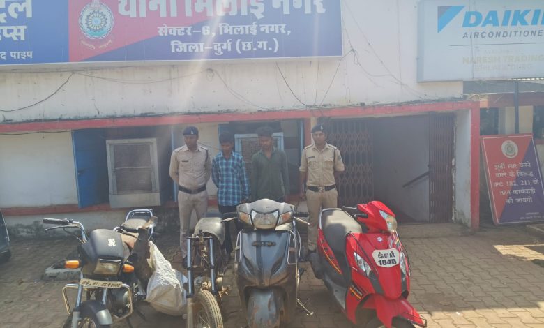 थाना भिलाई नगर क्षेत्र में अलग अलग स्थानों से मोटर साइकिल और स्कूटी चोरी करने वाले आरोपी गिरफतार