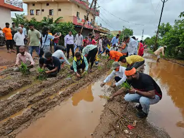 भिलाई ✍️भाजपाइयों ने धान रोप कर किया खराब सड़क का विरोध:कहा भिलाई निगम टैक्स तो ले रहा है, लेकिन विकास के नाम पर जीरो है
