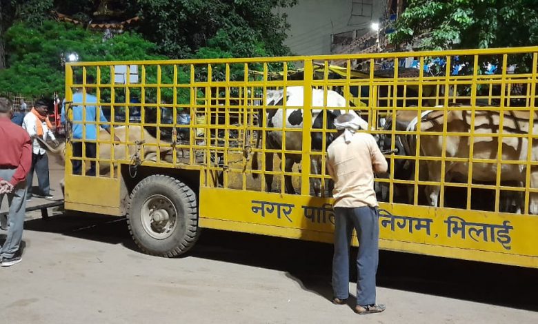 अवारा मवेशियों को पकड़ रही भिलाई निगम की टीम रोका छेका अभियान के तहत अवारा मवेशी पकड़ने की कार्यवाही निरंतर जारी