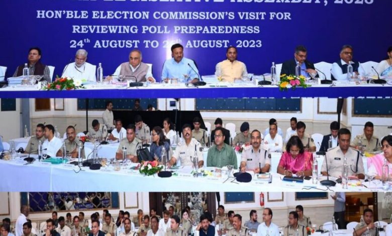 मुख्य निर्वाचन आयुक्त, निर्वाचन आयुक्तद्वय और आयोग के वरिष्ठ अधिकारियों ने बैठक में विधानसभा निर्वाचन के लिए पोस्टल बैलेट की आवश्यकता, कम्युनिकेशन प्लान, निर्वाचन संपन्न कराने वाले अधिकारियों-कर्मचारियों के प्रशिक्षण, कानून-व्यवस्था की स्थिति और स्वीप (SVEEP) गतिविधियों की भी समीक्षा की। भारत निर्वाचन आयोग के वरिष्ठ उप निर्वाचन आयुक्त धर्मेन्द्र शर्मा और नितेश व्यास, उप निर्वाचन आयुक्त हृदेश कुमार, मनोज कुमार साहू, आर.के. गुप्ता और अजय भादू, महानिदेशक बी. नारायणन, निदेशक यशवेंद्र सिंह और अशोक कुमार, वरिष्ठ प्रधान सचिव एन.एन. बुटोलिया, प्रधान सचिव एस.बी. जोशी, संयुक्त निदेशक अनुज चांडक, अवर सचिव रितेश सिंह, छत्तीसगढ़ की मुख्य निर्वाचन पदाधिकारी रीना बाबासाहेब कंगाले और सुरक्षा नोडल अधिकारी ओ.पी. पाल भी बैठक में शामिल हुए।
