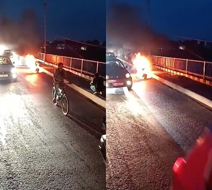 धू-धूकर जली गाड़ी और वाहनों की लगी कतार