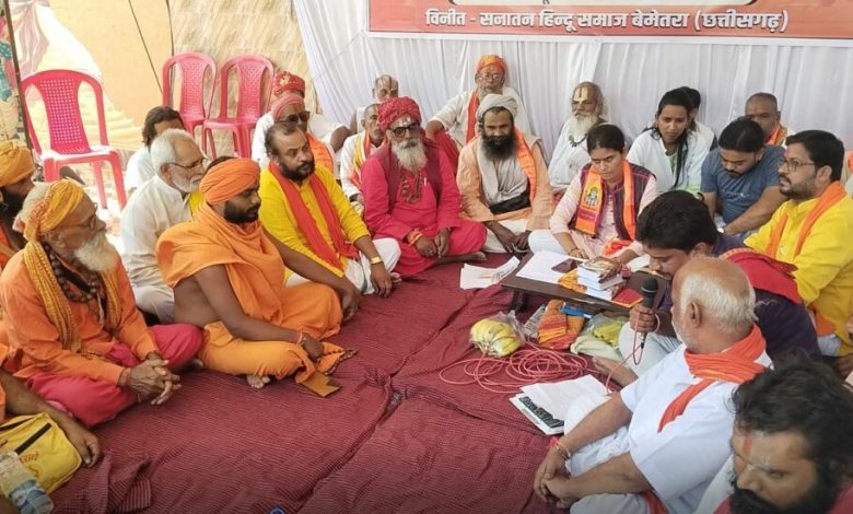 बेमेतरा में बड़ी संख्या में साधु संत आमरण अनशन पर बैठे, श्रीराम मंदिर जमीन के मामले ने पकड़ा जोर