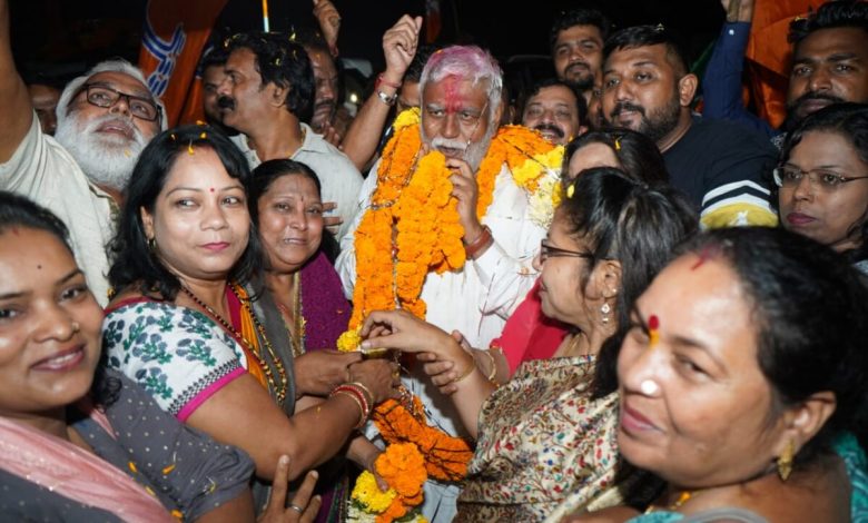 भिलाई नगर विधानसभा से भाजपा प्रत्याशी पूर्व केबिनेट मंत्री प्रेम प्रकाश पांडेय का भिलाई शहर के चौक-चौराहों में कार्यकर्ताओं ने फूल माला पहनाकर किया स्वागत
