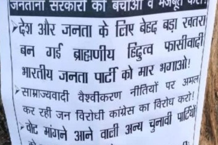 अपने पर्चे में नक्सलियों नें लिखा है, – झूठे छत्तीसगढ़ विधानसभा चुनाव का बहिष्कार करों! जनताना सरकारों को बचाओं व मजबूत करों! देश और जनता के लिए बेहद बड़ा खतरा बन गई ब्राह्मणीय हिन्दुत्व फासीवादी भारतीय जनता पार्टी को मार भगाओं!