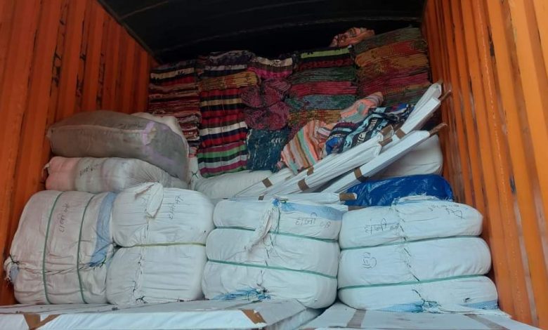 चुनाव हेतु वाहनों की चेकिंग दौरान भारी मात्रा मे चादर भरी हुई कंटेनर जप्त ।