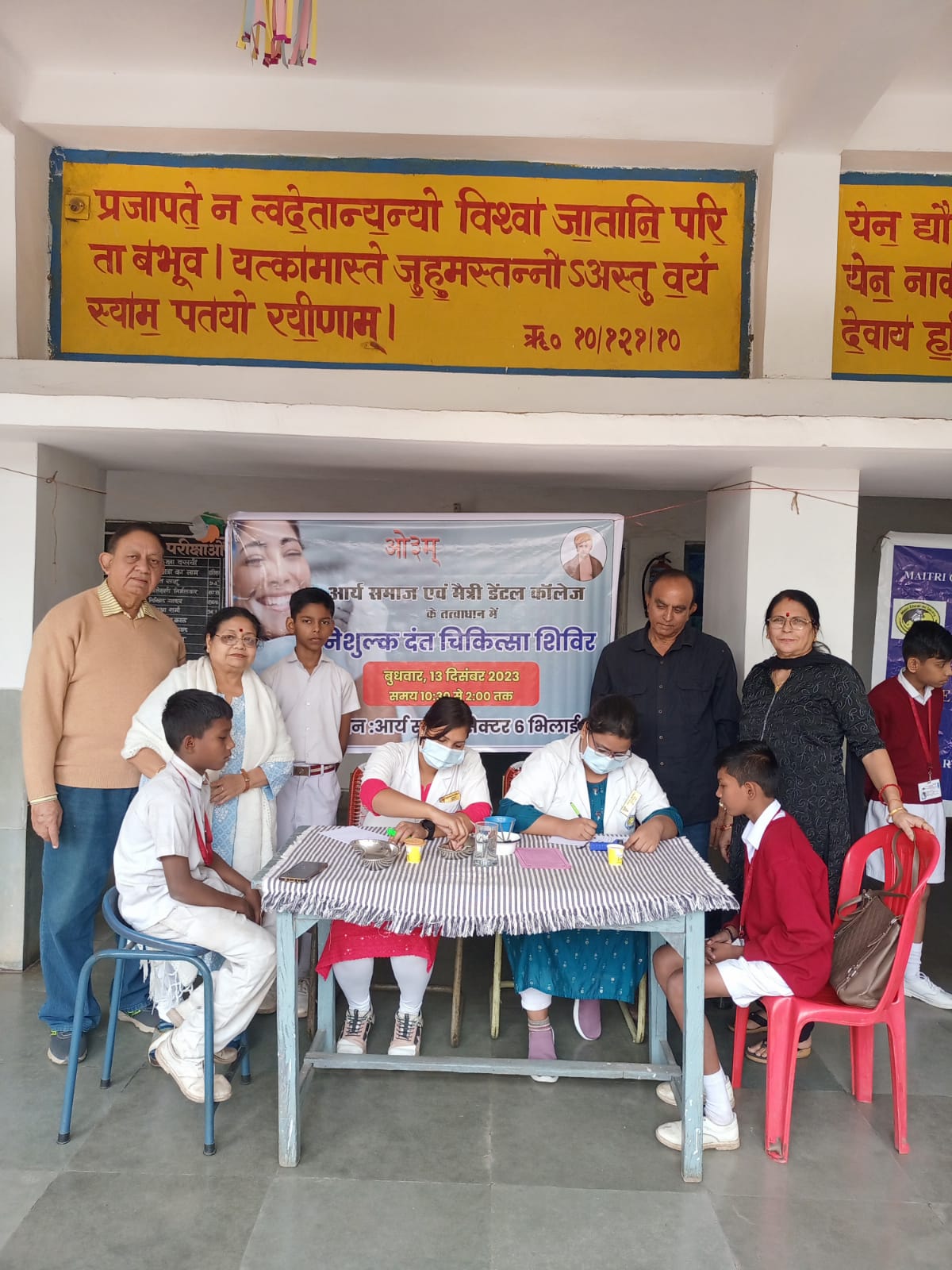 भिलाई | महर्षि दयानंद आर्य विद्यालय, सेक्टर 6, आर्य समाज मंदिर में निशुल्क दंत चिकित्सा जांच शिविर का आयोजन किया गया, जिसका 259 लोगों ने लाभ लिया। मैत्री कॉलेज ऑफ डेंटिस्ट्री एंड रिसर्च सेंटर के दंत विभाग अध्यक्ष डॉ. वी. बालासुब्रमण्यम, एमडीएस ने अपनी टीम के साथ शिविर में सेवा दी।