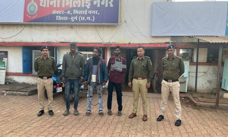 जिला दुर्ग के वरिष्ठ पुलिस अधीक्षक श्री रामगोपाल गर्ग भा.पु.से. के द्वारा जिले में शांति व्यवस्था को बनाये रखने एवं अपराधिक किश्म के लोगो पर सतत निगरानी रखकर त्वरित कार्यवाही करने के लिए दिये गये दिशा निर्देशो का कड़ाई से पालन करते हुये अतिरिक्त पुलिस अधीक्षक शहर जिला दुर्ग श्री अभिषेक झा एवं नगर पुलिस अधीक्षक भिलाई नगर श्री विश्वदीपक त्रिपाठी (रापुसे.) के मार्गदर्शन मे थाना भिलाई नगर की पुलिस टीम द्वारा त्वरित कार्यवाही कर न्यायालय पेश किया गया ।
