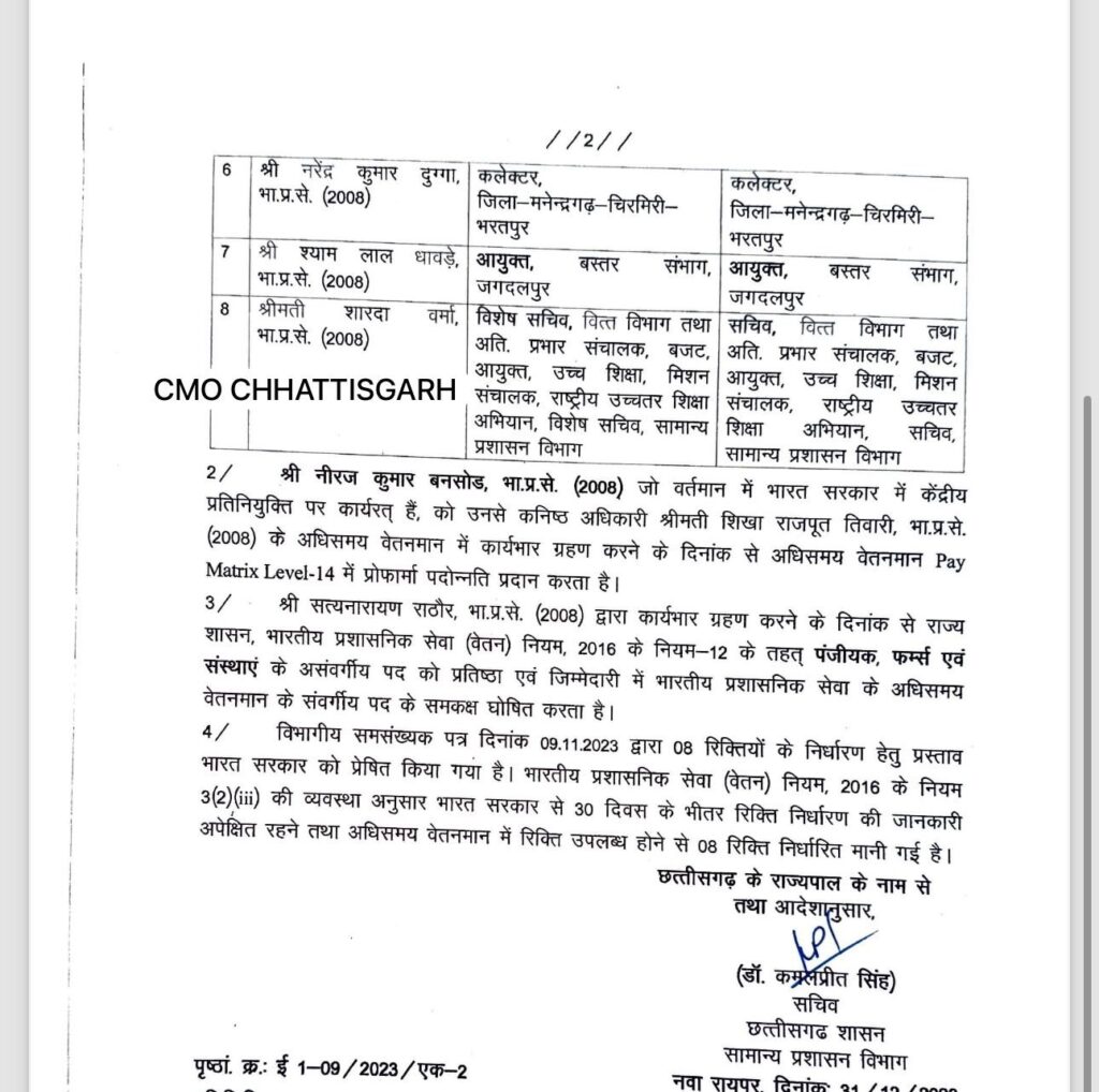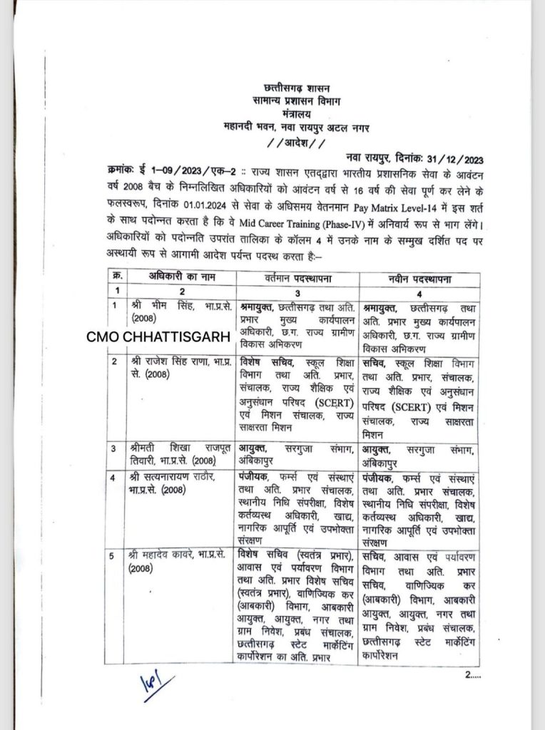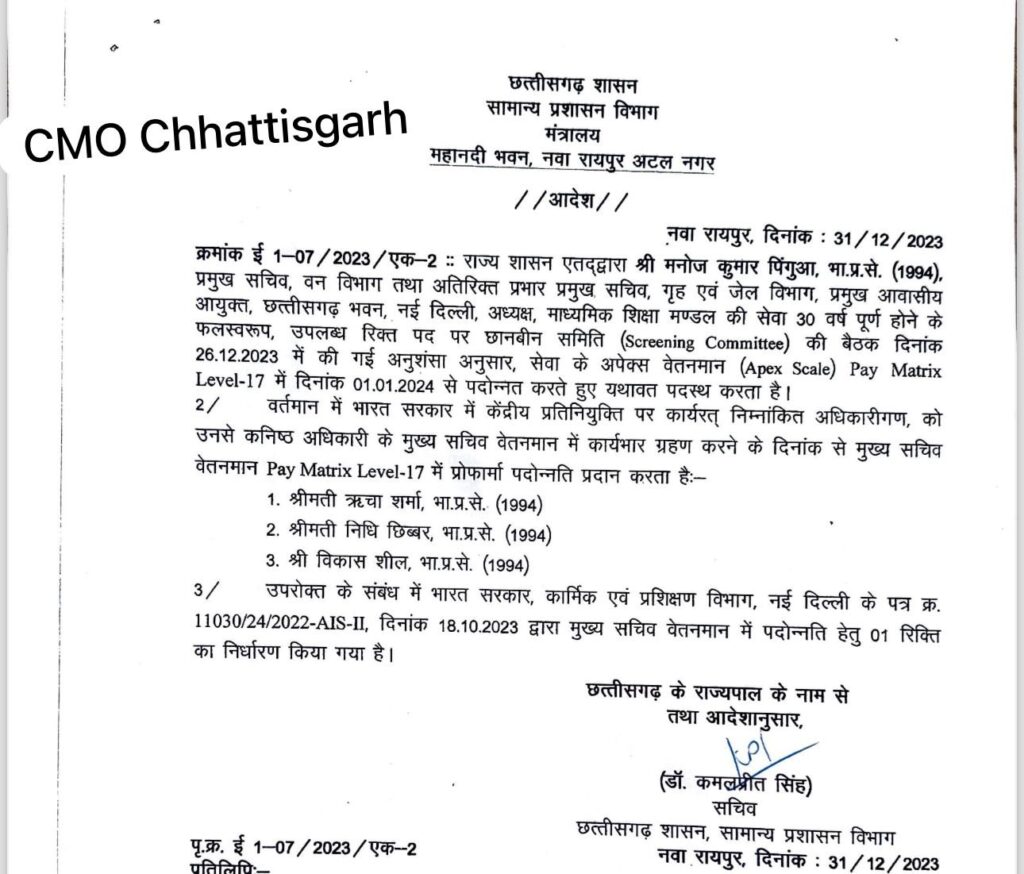 छत्तीसगढ़ में एक दर्जन IAS अधिकारियों को मिला प्रमोशन, 4 प्रमुख सचिव बने एडिशनल चीफ सेक्रेट्री …देखें लिस्ट