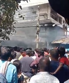 फ़िलहाल दमकल की टीम ने आग पर क़ाबू पा लिया है ।बताया जा रहा है कि किराना दुकान में दोना पत्तल रखा हुआ था जिसने आग लगी फिर आग दुकान में फैल गई।
