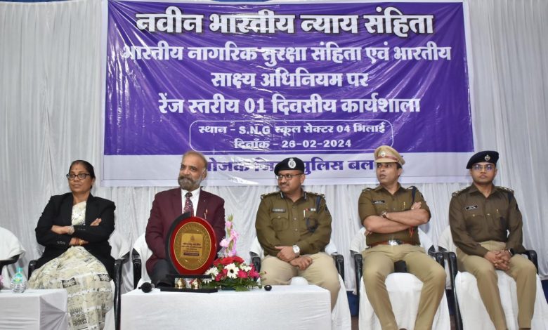 तत्पश्चात स्वागत उद्बोधन में पुलिस अधीक्षक दुर्ग श्री जितेन्द्र शुक्ला द्वारा कार्यशाला के विषय एवं उसकी महत्ता के संबंध में बताया गया। जिसके बाद पुलिस महानिरीक्षक दुर्ग रेंज श्री राम गोपाल गर्ग के द्वारा नवीन भारतीय न्याय संहिता, भारतीय नागरिक सुरक्षा संहिता, भारतीय साक्ष्य अधिनियम के विषय को अत्यंत महत्वपूर्ण बताते हुए ध्यान देकर ,समझने की बात रेंज से आए सभी पुलिस अधिकारी एवं कर्मचारीयों को कहा।