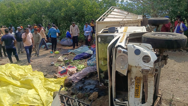छत्तीसगढ़ में पिकअप पलटा, 18 की मौत:सभी आदिवासी, इनमें मां-बेटी सहित 16 महिलाएं; कवर्धा में 20 फीट गहरे गड्ढे में गिरी गाड़ी