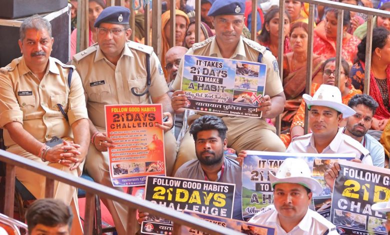 рдпрд╛рддрд╛рдпрд╛рдд рдкреБрд▓рд┐рд╕ рджреБрд░реНрдЧ рдХреЗ рдЬрд╡рд╛рдиреЛрдВ рджреНрд╡рд╛рд░рд╛ рдХрдерд╛ рд╕реБрдирдиреЗ рдЖрдП рд╢реНрд░рджреНрдзрд╛рд▓реБрдУрдВ рдХреЛ 21 рдбреЗ рдЪреИрд▓реЗрдЬ рдХреА рдЬрд╛рдирдХрд╛рд░реА рд╕рдВрдмрдВрдзрд┐рдд рдкреЙрдореНрдкреНрд▓реЗрдЯ рд╡рд┐рддрд░рдг рдХрд┐рдпрд╛ рдЧрдпрд╛ рд╕рд╛рде рд╣реА рджреБрд░реНрдЧ рдкреБрд▓рд┐рд╕ рджреНрд╡рд╛рд░рд╛ рд╡рд┐рдЧрдд 21рджрд┐рдиреЛрдВ рд╕реЗ рдЪрд▓рд╛рдпреЗ рдЬрд╛ рд░рд╣реЗ рдпрд╛рддрд╛рдпрд╛рдд рдЬрд╛рдЧрд░реВрдХрддрд╛ рдЕрднрд┐рдпрд╛рди рдХреЗ рддрд╣рдд рдЪреМрдХ рдЪреМрд░рд╛рд╣реЗ, рд╢рд╛рд╕рдХреАрдп рдПрд╡рдВ рдкреНрд░рд╛рдИрд╡реЗрдЯ рд╕рдВрд╕реНрдерд╛ рдХреЗ рдХрд░реНрдордЪрд╛рд░реА рдЕрдзрд┐рдХрд╛рд░реАрдЧрдг, рдорд╛рд░реНрдирд┐рдЧрд╡реЙрдХ рдПрд╡рдВ рдкреНрд▓реЗ рдЧреНрд░рд╛рдЙрдгреНрдб рдореЗрдВ рдЖрдиреЗ рд╡рд╛рд▓реЗ рдЖрдордЬрди, рд╕рд╛рдпрдВ рдХреЗ рд╕рдордп рдкрд░рд┐рд╡рд╛рд░ рдХреЗ рд╕рд╛рде рдкрд╛рд░реНрдХ рдЬрд╛рдиреЗ рд╡рд╛рд▓реЗ, рд╢реЙрдкрд┐рдВрдЧ рдХреЙрдореНрдкрд▓реЗрдХреНрд╕, рдореЙрд▓ рдЗрддреНрдпрд╛рджрд┐ рдЬрдЧрд╣реЛ рдкрд░ рдпрд╛рддрд╛рдпрд╛рдд рдкреБрд▓рд┐рд╕ рдХреА рдореВрд╣рд┐рдо рд╕реЗ рдЕрд╡рдЧрдд рдХрд░рд╛рддреЗ рд╣реБрдП рдмрддрд╛рдпрд╛ рдЧрдпрд╛ рдХрд┐ рдпрджрд┐ рдЖрдк 21 рджрд┐рди рддрдХ рд▓рдЧрд╛рддрд╛рд░ рджреЛ рдкрд╣рд┐рдпрд╛ рд╡рд╛рд╣рди рдЪрд╛рд▓рди рдХреЗ рджреМрд░рд╛рди рд╣реЗрд▓рдореЗрдЯ рд▓рдЧрд╛рдиреЗ рд╕реЗ рдФрд░ рдЪрд╛рд░ рдкрд╣рд┐рдпрд╛ рд╡рд╛рд╣рди рдЪрд╛рд▓рди рдХреЗ рджреМрд░рд╛рди рд╕реАрдЯ рдмреЗрд▓реНрдЯ рд▓рдЧрд╛рддреЗ рд╣реЛ рддреЛ 22рд╡реЗрдВ рджрд┐рди рд╕реЗ рд╡реЗ рдЖрдкрдХреЗ рдЕрдЪреНрдЫреА рдЖрджрдд рдореЗрдВ рд╕реБрдорд╛рд░ рд╣реЛ рдЬрд╛рдпреЗрдЧрд╛ рдЗрд╕рдХреЗ рдкрд╢реНрдЪрд╛рдд рдЖрдк рдмрд┐рдирд╛ рд╣реЗрд▓рдореЗрдЯ рдПрд╡рдВ рдмрд┐рдирд╛ рд╕реАрдЯ рдмреЗрд▓реНрдЯ рд▓рдЧрд╛рдпреЗ рд╡рд╛рд╣рди рдЪрд▓рд╛рддреЗ рд╣реИ рддреЛ рдЖрдкрдХреЛ рд╕реНрд╡рдпрдВ рдЕрд╕реБрд░рдХреНрд╖рд┐рдд рдПрд╡рдВ рдЕрд╕реБрд╡рд┐рдзрд╛рдЬрдирдХ рдорд╣рд╕реВрд╕ рд╣реЛрддрд╛ рд╣реИ рдФрд░ рдЖрдкрдХреЗ рдЕрдВрджрд░ рдПрдХ рдЕрдЪреНрдЫреА рдЖрджрдд рд╕реБрдорд╛рд░ рд╣реЛ рдЬрд╛рддреА рд╣реИ рдХреА рдЬрд╛рдирдХрд╛рд░реА рджреА рдЧрдпреА рдЬрд┐рд╕рдореЗ рд▓рдЧрднрдЧ 1000 рд▓реЛрдЧреЛ рдЗрд╕ рдЕрднрд┐рдпрд╛рди рд╕реЗ рдЬреБреЬрдХрд░ рд╣реЗрд▓рдореЗрдЯ рдФрд░ рд╕реАрдЯ рдмреЗрд▓реНрдЯ рд▓рдЧрд╛рдпреЗред
