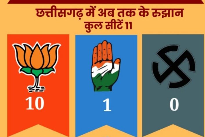 छत्तीसगढ़ की 11 सीटों में भाजपा 10 सीट में आगे, कांग्रेस से ज्योत्सना महंत को बढ़त