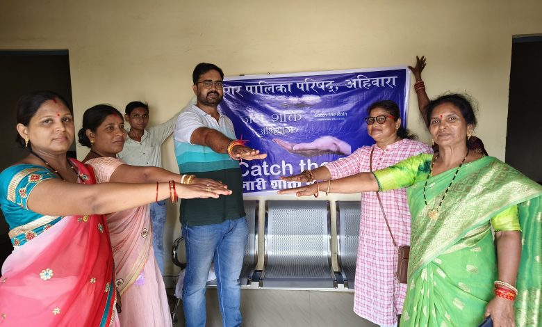 * कैच द रैन कार्यक्रम अंतर्गत आज नगर पालिका परिषद अहिवारा मे दीनदयाल अंत्योदय योजना- राष्ट्रीय शहरी आजीविका मिशन अंतर्गत गठित महिला स्व सहायता समूह की महिलाओं को शपथ दिलाई गयी। कार्यक्रम के बारे में मुख्य नगर पालिका अधिकारी श्रीमति सीमा बख़्शी मैङम ने बताया कि कैच द रैन कार्यक्रम अंतर्गत आमजन को वर्षा जल को संग्रह करने हेतु आम लोगों को जागरूक करना है। इस कार्यक्रम अंतर्गत जल स्रोतों की सफाई, पौधारोपण तथा सोख्ता गड्ढ़ा निर्माण भी जन सहयोग के माध्यम से किया जाना है। इसी कङी मे आज स्व सहायता समूह की दीदीयों को वर्षा जल के संग्रह तथा जल के समुचित उपयोग हेतु शपथ दिलाई गयी है। आगे ये सक्रिय महिलाएं अन्य महिलाओं को जागरूक करेंगी और यही क्रम आगे भी चलता रहेगा। कार्यक्रम में मिशन मैनेजर शरद कुमार सिंह, नागमणि साहू,पुनीता रावत, हेमलता साहू, गंगोत्री साहू, भारती साहू, सीमा देसाई, पंकज साहू, किरण, आदि उपस्थित रहे हैं।