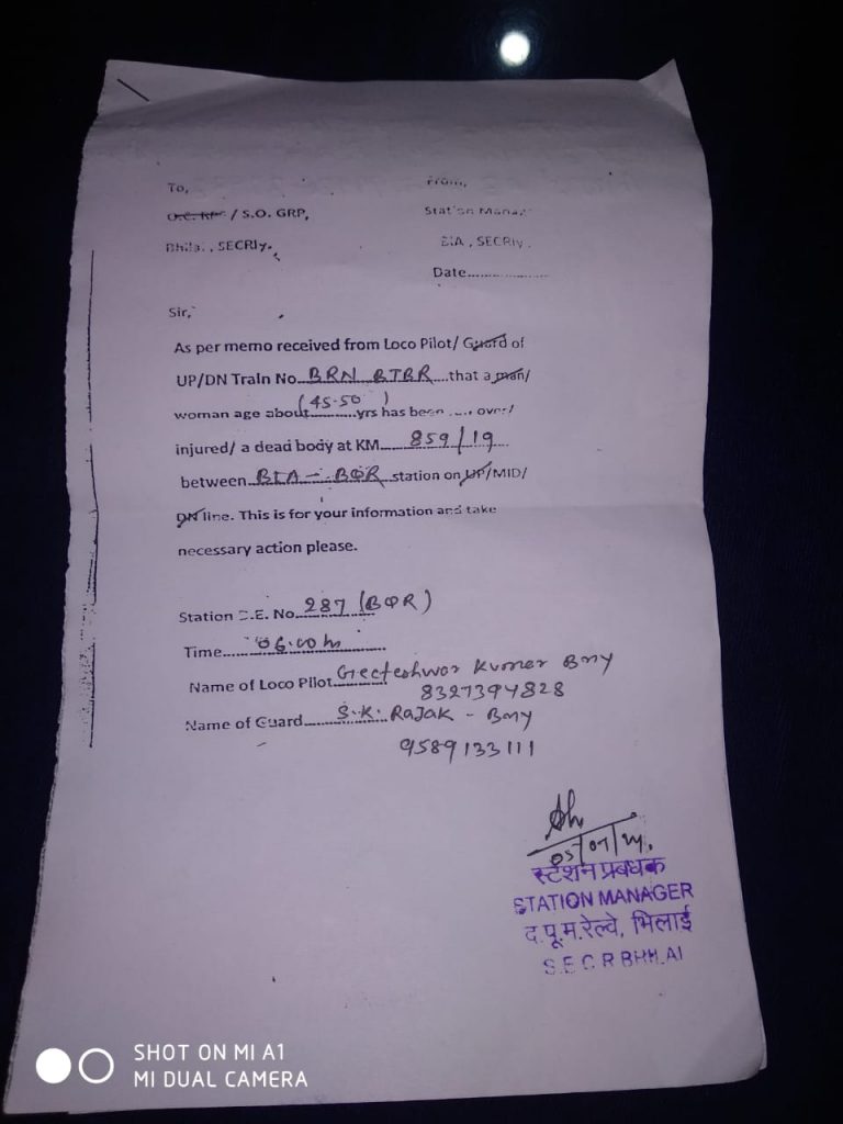 भिलाई में महिला ने ट्रेन से कट कर दी जान अभी तक महिला की निख्यात नही हो पाई है फिलाल सुपेला पुलिस ने मर्ग को अपने कब्जे में लिया महिला की पहचान में जुट गई