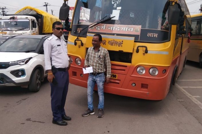 🔸 _*यातायात पुलिस द्वारा सर्विस रोड में बस चलाने वाले वाहन चालके के विरूद्ध भी मोटर व्हीकल एक्ट के तहत कार्यवाही की गई।*_