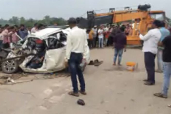 CG में ट्रक में घुसी कार, पति  पत्नी-बेटे की दर्दनाक मौत 1KM तक कार को घसीटा ट्रक; कटर से काटकर निकाले गए शव