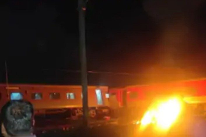 चेन्नई के पास मैसूर-दरभंगा एक्सप्रेस मालगाड़ी से टकराई:पैसेंजर ट्रेन के 6 डिब्बे पटरी से उतरे, आग लगी; कई लोगों के घायल होने की खबर
