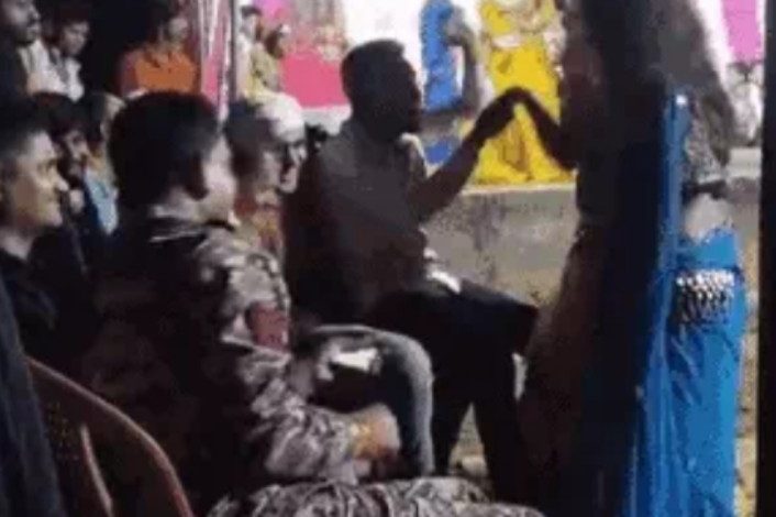 डांसर का हाथ पकड़ा, किए इशारे