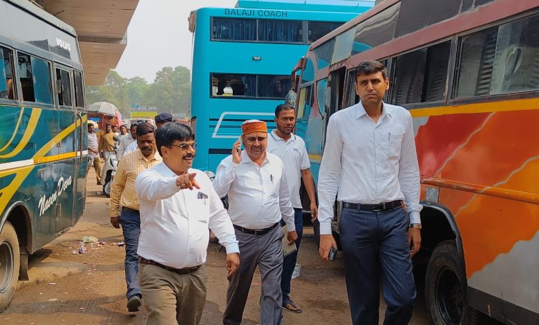 दुर्ग आयुक्त सुमित अग्रवाल ने किया नये बस स्टैंड का निरीक्षण,अव्यस्थित खड़े वाहनों पर कार्रवाई करने के दिए निर्देश, -लापरवाही बरतने पर कार्रवाई की चेतावनी दी,बस स्टैंड में बेतरतीब खड़ी बसों को हटाने कहा: