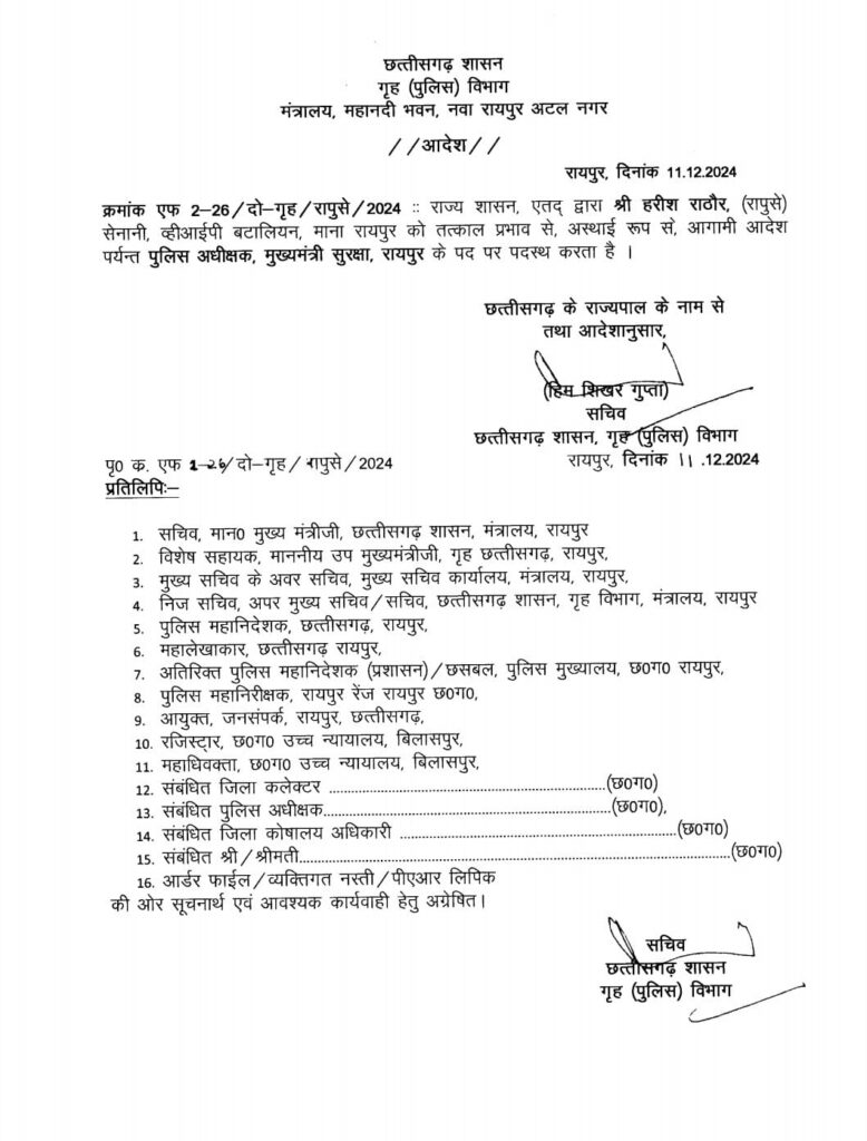 वहीं रवि कुर्रे को कोरिया का नया एसपी बनाया गाय है। सूरज सिंह परिवार को बालोद बटालियन ट्रांसफर किया गया है।