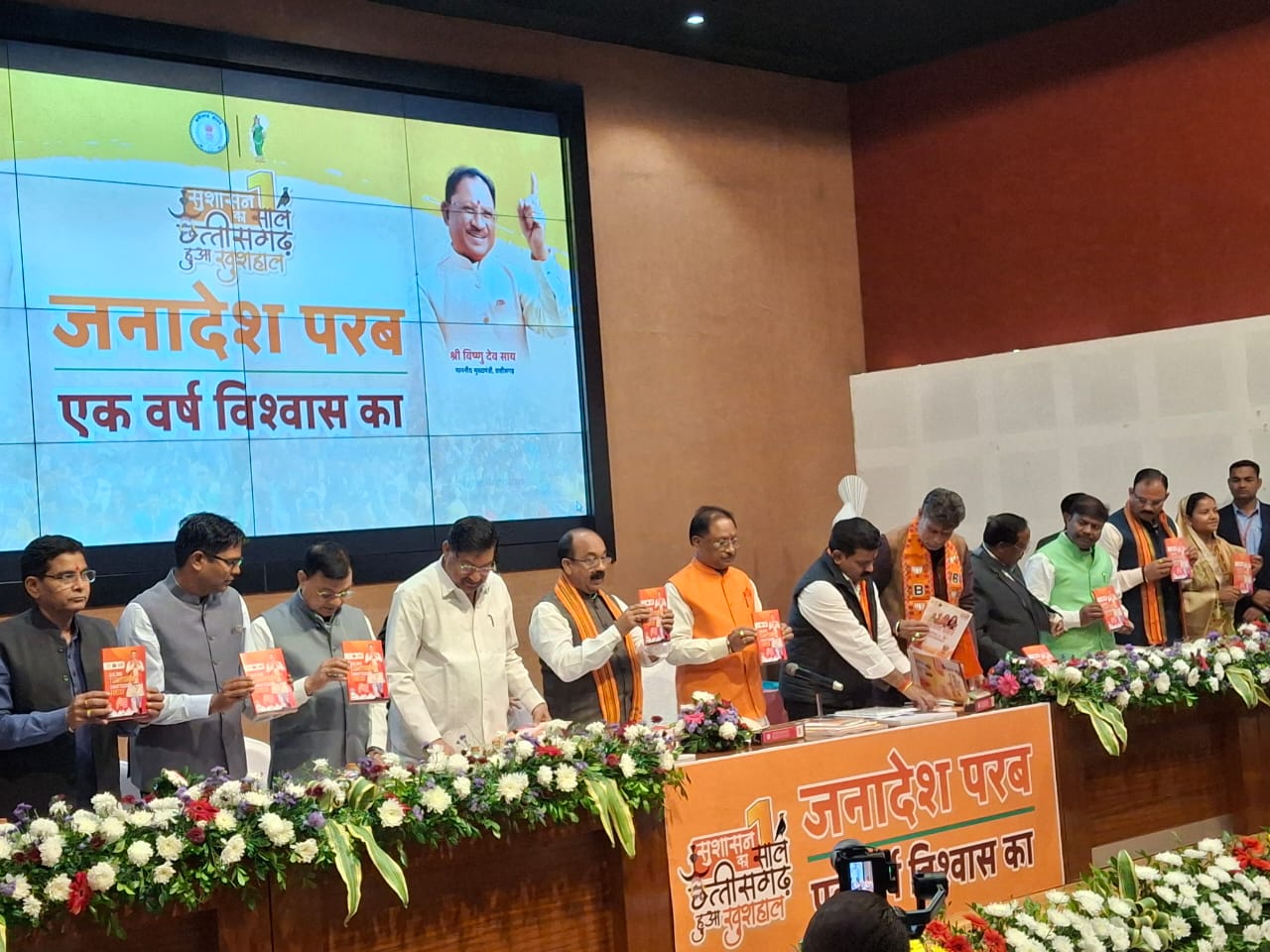 CG में साय सरकार के 1 साल पूरे CM बोले-हमने वादा निभाया:10 मंत्रियों के साथ पेश किया लेखा-जोखा, कहा-कांग्रेस के समय भरोसे का संकट था