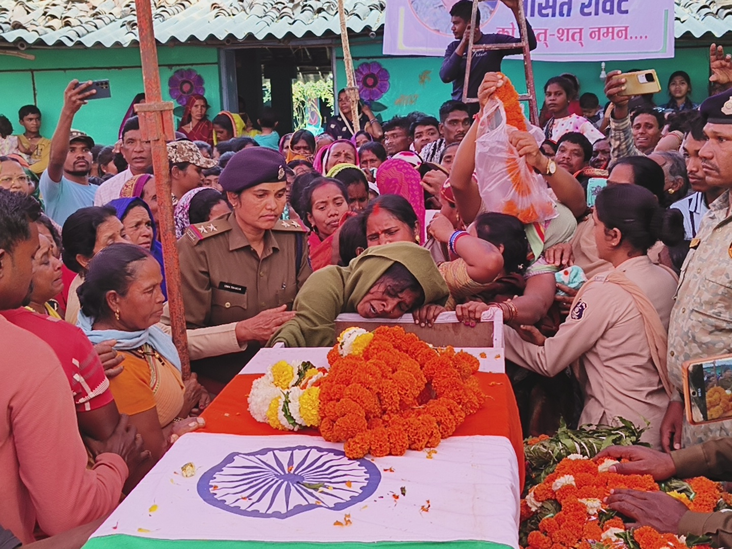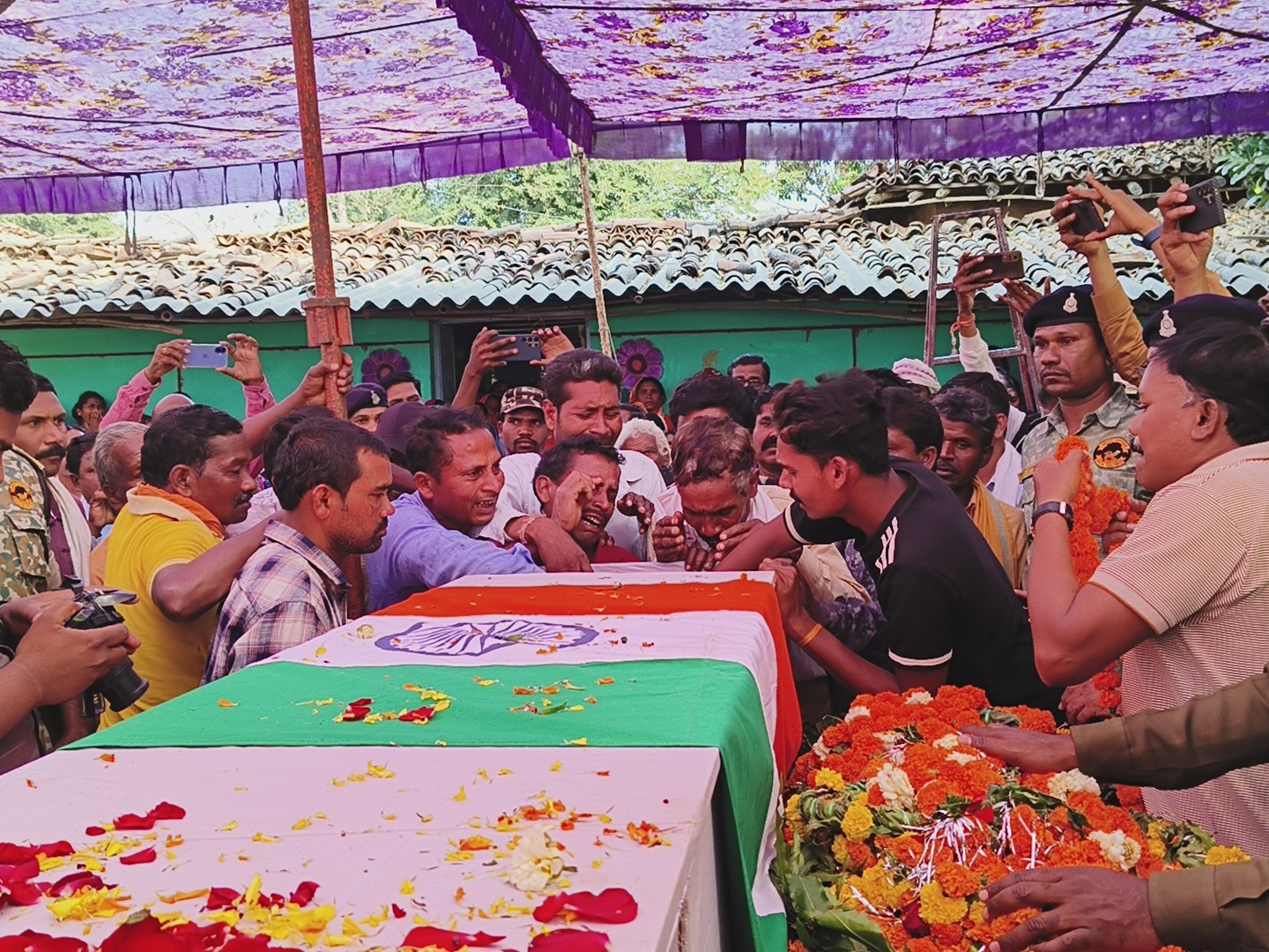 वीर शहीद की दो छोटी बेटियां, जो अभी इतनी छोटी है कि उन्हें अपने पिता की शहादत का मतलब भी समझ नहीं आ रहा है। शहीद की पत्नी की दर्दनाक चीखें सुनकर हर किसी की आंखें नम हो गईं। महिला पुलिस कर्मियों ने परिवार की महिलाओं को संभालने का प्रयास किया, लेकिन उनके आंसू थमने का नाम नहीं ले रहे थे।