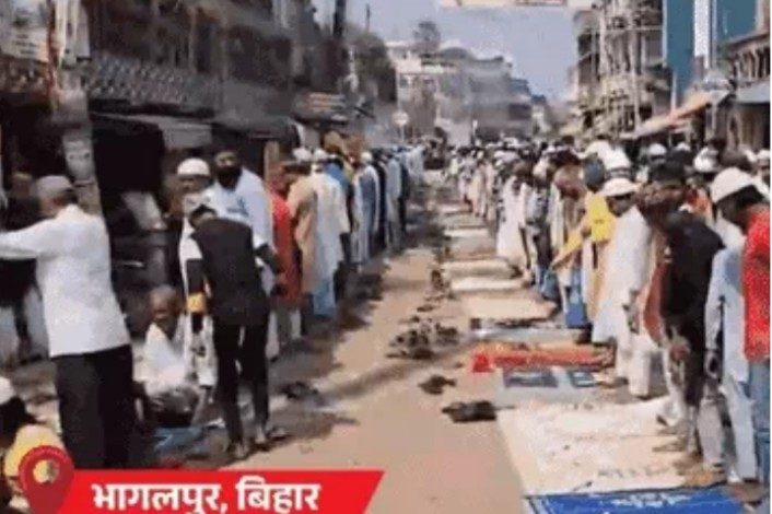 देशभर में होली के बीच जुमे की नमाज अदा:बिहार में सड़क पर नमाज, संभल में तिरपाल से ढकी मस्जिद से गुजरा होली