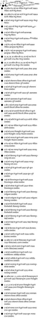 छत्तीसगढ़ से गुजरने वाली 50 ट्रेनों को फिर कैंसिल कर दिया गया है। ये गाड़ियां 23 अप्रैल से 6 मई तक तक अलग-अलग दिनों में नहीं चलेंगी। इसके अलावा, 6 ट्रेनों के रूट में बदलाव किया गया है और 28 ट्रेनों के आखिरी स्टेशन को बदला गया है।