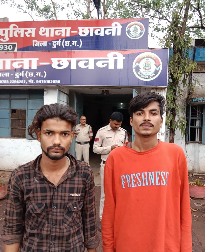 भिलाई में आज छावनी थाना को सूचना मिली कि बैकुण्ठ धाम मैदान कैम्प 02 भिलाई में ललित पाण्डेय नामक व्यक्ति द्वारा हाथ में लोहे का चाकू लेकर लहराते हुए लोगों का डरा धमका रहा है एवं सी मार्ट के पास गली पावर हाऊस भिलाई में आकाश पाण्डेय नामक व्यक्ति द्वारा हाथ में लोहे का चाकू लेकर लहराते हुए लोगों का डरा धमका रहा है । इस सूचना पर तत्काल पुलिस पार्टी मौके पर घेरा बंदी कर रेड कार्यवाही कर ललित पांडे एवं आकाश पांडे को पकड़ा जाकर इनके कब्जे से धारदार चाकू बरामद किया गया । आकाश पांडे को थाना छावनी के अपराध क्र. 195/25 धारा 25, 27 आर्म्स एक्ट में एवं ललित पांडे को थाना छावनी के अपराध क्र. 196/25 धारा 25, 27 आर्म्स एक्ट में गिरफ्तार कर न्यायिक रिमाण्ड पर भेजा गया है ।