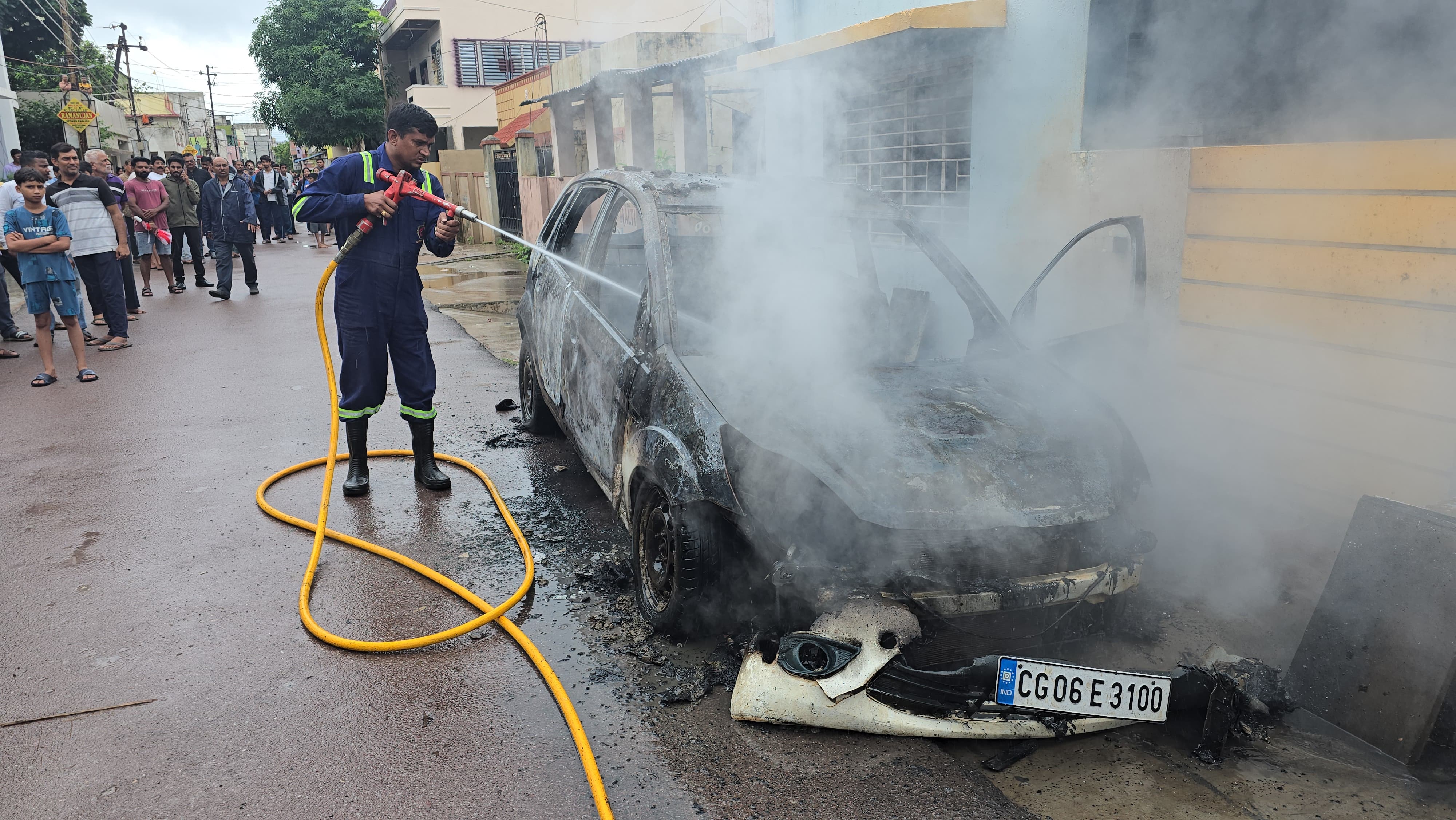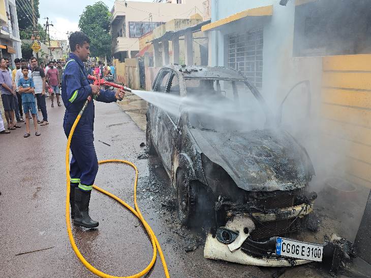 दुर्ग शहर के कर्मचारी नगर वार्ड क्रमांक-16 में सड़क पर खड़ी एक कार (CG06E3100) में अचानक आग लग गई। आग इतनी तेज थी कि कुछ ही देर में पूरी कार लपटों से घिर गई। स्थानीय लोगों ने आग बुझाने का प्रयास किया और फायर ब्रिगेड को तत्काल सूचना दी। मौके पर पहुंची दमकल टीम ने तेजी से कार्रवाई करते हुए आग को बुझा दिया। कार में आग लगने की वजह फिलहाल स्पष्ट नहीं हो सकी है।
