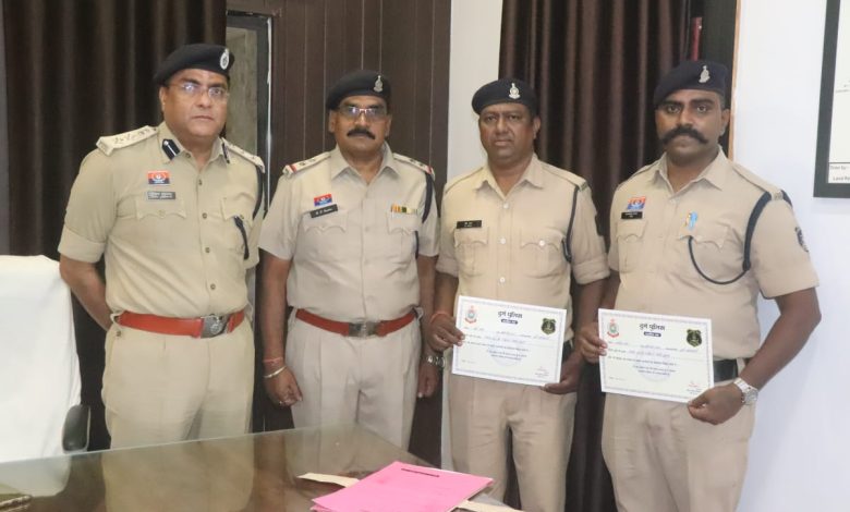 दुर्ग में डायल 112 के स्टाफ ने बचाई महिला की जान . आत्महत्या करने नदी में कूद गई थी महिला . . डायल 112 के स्टाफ व्दारा किए गए उत्कृष्ट कार्य के लिए SSP ने किया सम्मानित