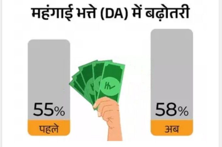 यह फैसला बुधवार को पीएम मोदी की अध्यक्षता में हुई कैबिनेट मीटिंग में लिया गया। अब कर्मचारियों का महंगाई भत्ता 55% से बढ़कर 58% हो जाएगा।