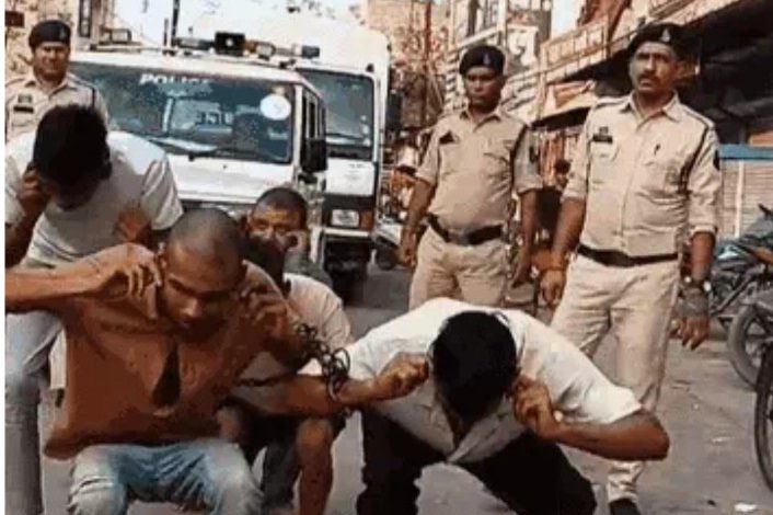 पुलिस ने चारों आरोपियों की जमकर खातिरदारी की। जिसके बाद उन्हें उनके मोहल्ले में ले जाया गया। इस बीच पुलिसकर्मियों ने उन्हें सबक सिखाने के लिए जमकर डंडे चलाए। बदमाशों को कान पकड़कर उठक-बैठक भी करवाई।