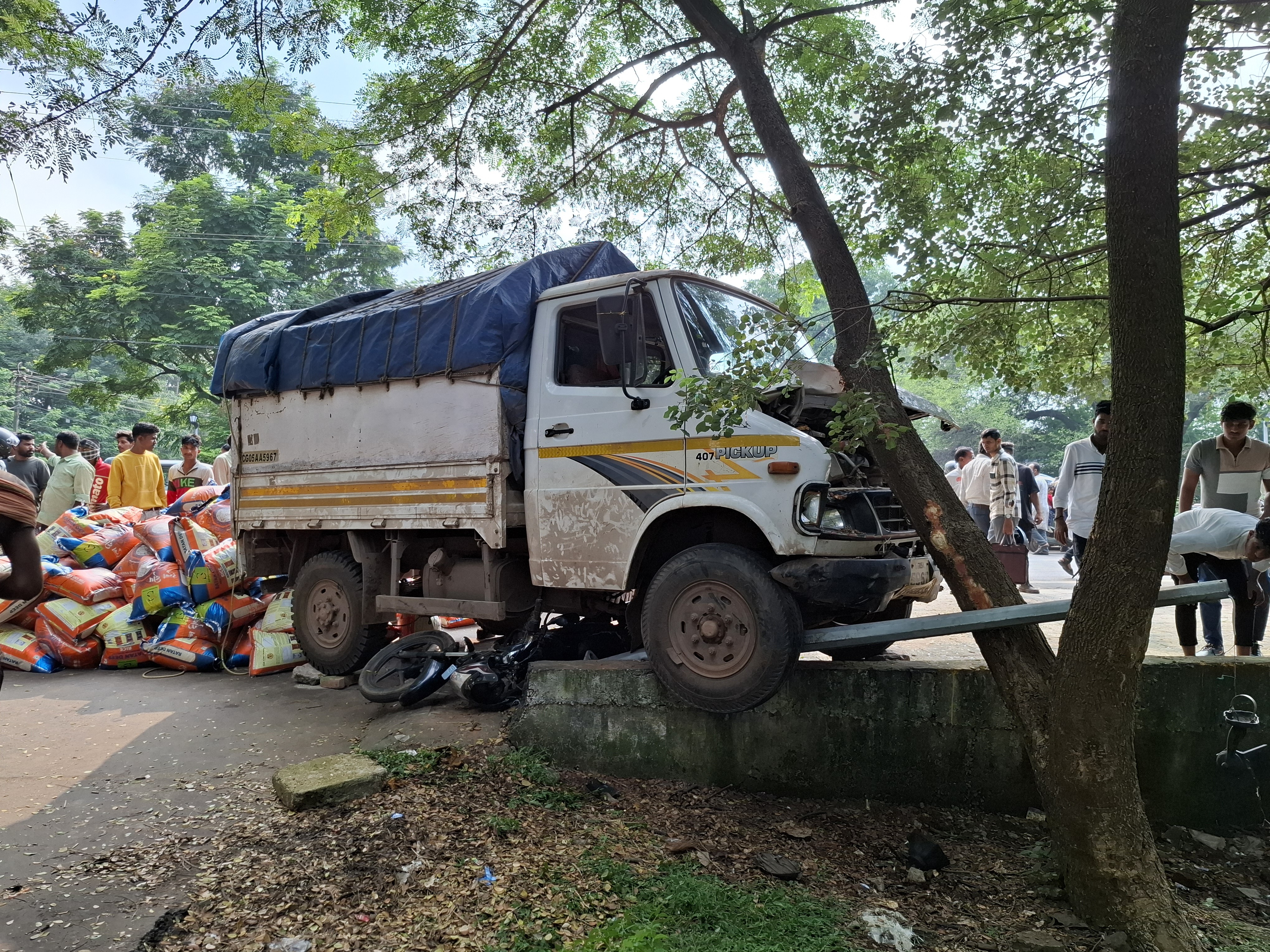 ट्रक पेड़ से टकराकर रुक गया, जिससे युवती बाल-बाल बच गई, जबकि युवक गंभीर रूप से घायल हो गया। हादसे के बाद आसपास के लोगों ने तुरंत मौके पर पहुंचकर ट्रक में लदा चावल खाली कराया और ड्राइवर को बाहर निकालने में मदद की।
