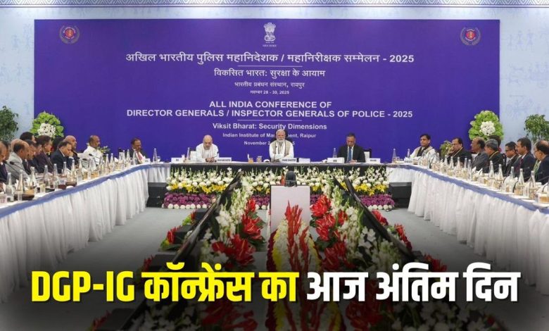 IIM नवा रायपुर में 60वें अखिल भारतीय DGP-IG कॉन्फ्रेंस का आज तीसरा और अंतिम दिन है। प्रधानमंत्री नरेंद्र मोदी ने सुबह 9 बजे अधिकारियों से अनौपचारिक चर्चा की। इसके बाद 10 बजे से बैठक शुरू हुई। पहले सत्र में उन राज्यों को प्रेजेंटेशन देने का मौका मिला, जो कल अपनी रिपोर्ट पेश नहीं कर पाए थे।