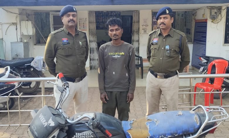 भिलाई में मोटर सायकल चोरी करने वाला 01 आरोपी गिरफ्तार* कालीबाड़ी हाउसिंग बोर्ड भिलाई से किया था चोरी* आरोपी के कब्जे से चोरी की मोटर सायकल जप्त