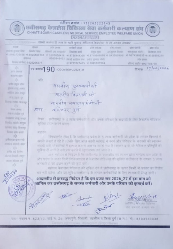 छत्तीसगढ़ में कैशलेस चिकित्सा योजना को बजट में शामिल करने की कैशलेस चिकित्सा कर्मचारी संघ की मांग
