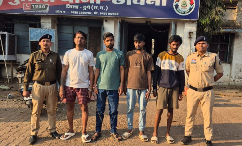 भिलाई के बैकुंठधाम में हिरोईन (चिट्टा) के साथ 04 आरोपी को पुलिस की टीम ने दबोचा ▪️ 04 आरोपियों को गिरफ्तार कर NDPS Act के तहत कार्यवाही