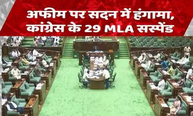 छत्तीसगढ़ विधानसभा में दुर्ग जिले के समोदा में अफीम की खेती के मुद्दे पर जोरदार हंगामा हुआ। कांग्रेस ने स्थगन लाकर मामले की चर्चा कराने की मांग की, लेकिन इसे अस्वीकार कर दिया गया। इसके बाद नारेबाजी करते हुए विपक्षी विधायक आसंदी तक पहुंच गए और गर्भगृह में भी हंगामा किया। इस दौरान 29 विपक्षी विधायकों को सस्पेंड कर दिया गया।