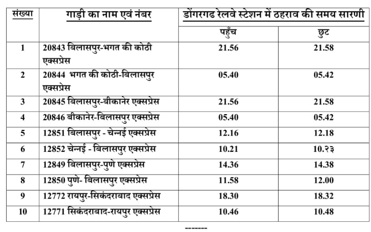 एक्सप्रेस ट्रेनों का डोंगरगढ़ में स्टॉपेज…