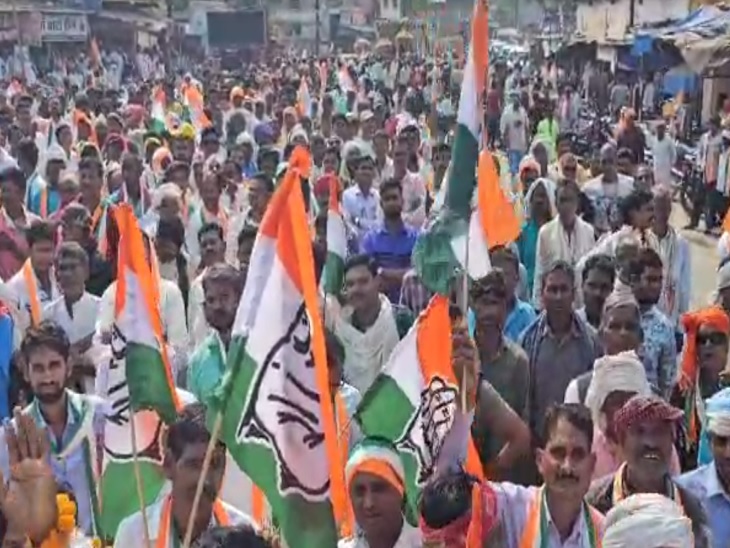 कवर्धा में मंत्री मोहम्मद अकबर की रैली में उमड़ी भीड़:हजारों लोगों का हुजूम लेकर दिखाई ताकत, बोले- अबकी बार 75 पार