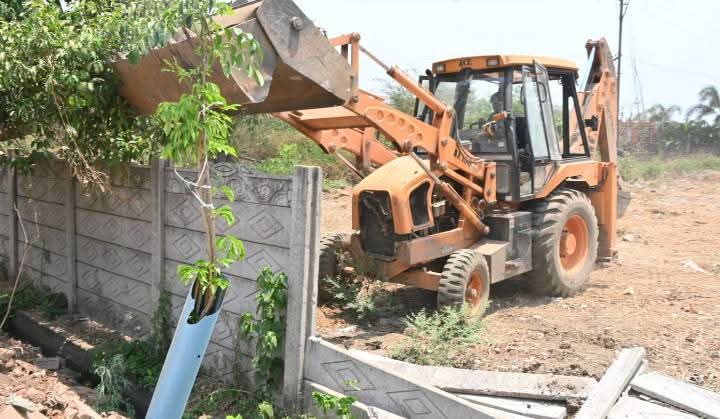 भिलाई में अवैध प्लाटिंग पर निगम का चला बुलडोजर अवैध रूप से निर्मित बाउण्ड्रीवाल को ध्वस्त किया तथा मौके से संबंधित सामग्री को जप्त किया गया